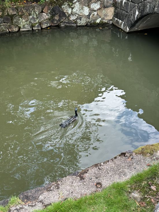 やはりいました👆カワウです。この日もお父さん白鳥は情熱的にカワウを追い掛け回していました。お母さん白鳥と大きくなったヒナは、少し離れたところで優雅に泳いでいました。